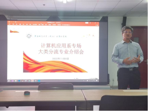 为深入践行“学党史、悟思想、办实事、开新局”要求,结合党史学习教育“我为群众办实事”实际,计算机应用系党支部牢牢把握“以生为本”的原则,结合2022年11月8日下午发布的太阳集团tyc539关于2021级计算机大类本科生专业分流通知,计算机应用系党支部于当天晚上7:00在公司235虚拟仿真实验室召开空间信息与数字技术专业答疑见面会,空间信息与数字技术专业学科带头人刘刚教授、系主任张夏林、党支部书记武云、班主任张志庭和李章林,辅导员谭文博参会,2021级本科生报名参会,武云担任主持。