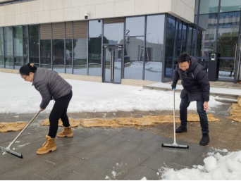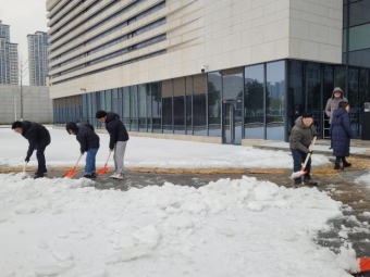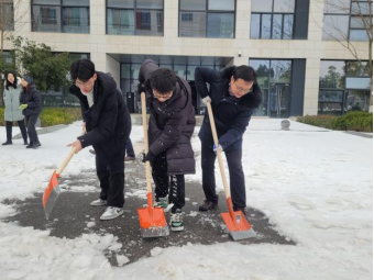 大家挥动铁具、轮番作业,干劲十足、配合默契,共同开辟出一条条洋溢着温情的出行平安路,也为公司的正式开学扫除了“障碍”。师生忙碌的身影在皑皑白雪中显得格外耀眼,俨然是冬日里的一抹暖阳。