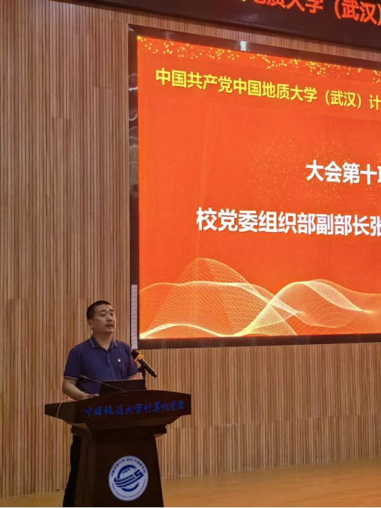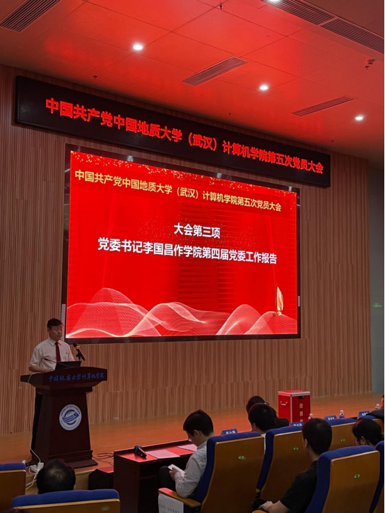 公司党委书记李国昌代表公司第四届党委作《全面加强党的领导 攻坚克难促发展-——为建设国内知名的高水平计算机学科而接续奋斗》工作报告。