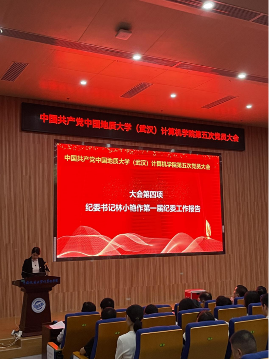 公司纪委书记林小艳代表公司第一届纪委作《忠诚履行职责使命深化全面从严治党——为建设国内知名的高水平计算机学科提供坚强保障》工作报告。
