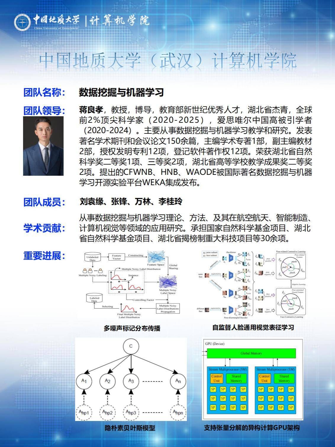 太阳集团tyc539蒋良孝教授领导的数据挖掘与机器学习团队连续获得国家自然科学基金项目、湖北省自然科学基金重点项目、湖北省揭榜制重大科技项目等资助,自主研发数据挖掘与机器学习系列理论及其应用创新成果,发表著名学术期刊和会议论文500余篇,授权国家发明专利50余项,登记计算机软件著作权30余项,出版教材专著10余部,荣获省部级以上奖励10余项。与国内外同类产品相比,具有高效和鲁棒的特点,目前已经在航空航天、智能制造、计算机视觉等领域推广应用,并获得广泛认可与好评,具有广泛的市场前景和预期经济效益。