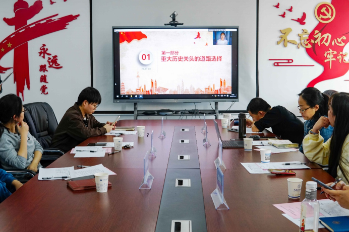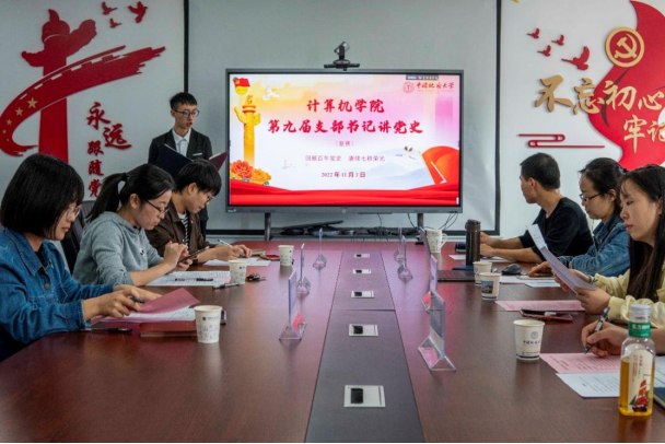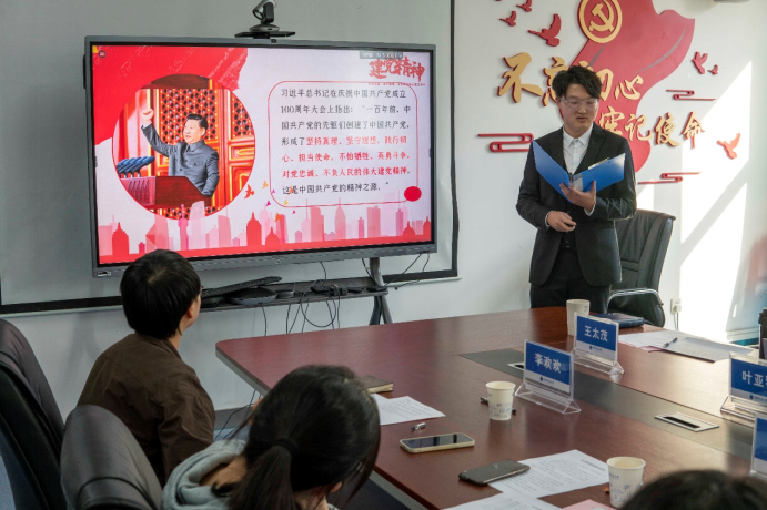 通过团支部书记讲述党的百年奋斗史和公司发展史,宣传党和国家事业以及公司取得的历史性成就、发生的历史性变革,让同学们更加知史爱党、知史爱国、知史爱校,坚定理想信念,厚植爱国爱校情怀。新时代的地大计科人要不负时代重托、不负党的期待、不负人民所望,坚定信念、提振信心、增添力量,在新征程中激扬青春,让青春之花在祖国和人民最需要的地方绽放。