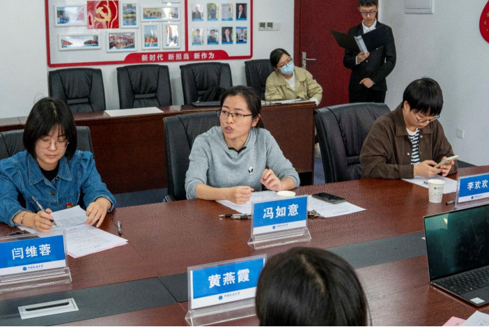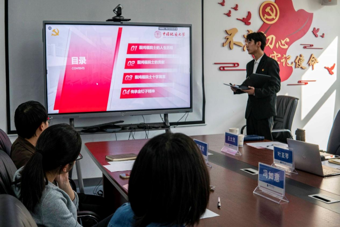 192202团支部书记高雷雨以“扎根在祖国青山绿水的‘金钉子’”为主题,讲述了殷鸿福院士的精神风貌和“金钉子”精神的内涵。