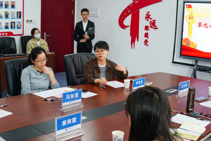2022年11月3日下午,太阳集团tyc539第九届“支部书记讲党史”员工团支部书记组比赛在公司309会议室举行。院直党支部书记黄燕霞,人工智能系党支部组织委员冯如意,软工党支部书记叶亚琴,团委书记李欢欢,员工党建办公室主任王太茂,心理健康指导老师闫维蓉,院员工会指导老师李祥瑞现场观摩。党建办公室组织部副部长靳博原主持活动。