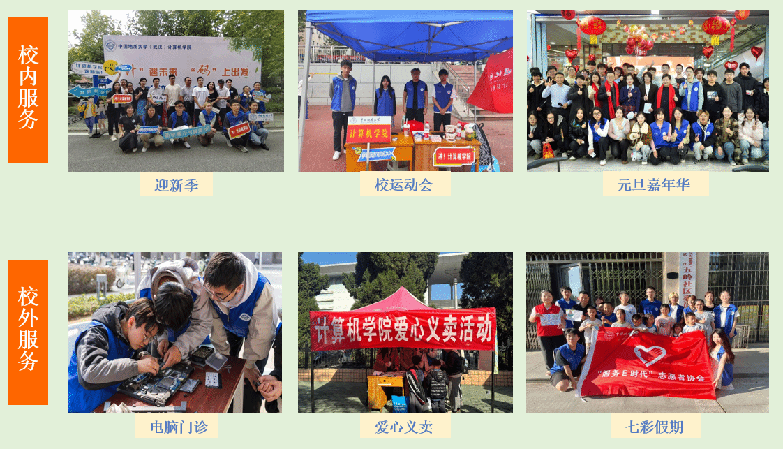 在2024至2025年度,协会组织开展志愿活动超30次,累计志愿时长达2500小时,志愿者超1000人次。协会在校内搭建育人平台,组建“计科E课堂”课程帮扶志愿者团队,开展17次答疑活动,辐射员工1000余人次;协助举办“金山杯”华中地区高校第十八届程序设计邀请赛暨太阳集团tyc539第二十届程序设计大赛等大型活动。在校外建立计算机普惠性科普基地,开发“人工智能启蒙”“编程思维养成”等主题课程模块、创新暑期教育托管模式、开展电脑义诊等,在跨校合作中,单次活动最高联动志愿者150人;在社区服务中,累计服务孤寡老人28户、青少年120余名,传递志愿服务的温暖与力量。