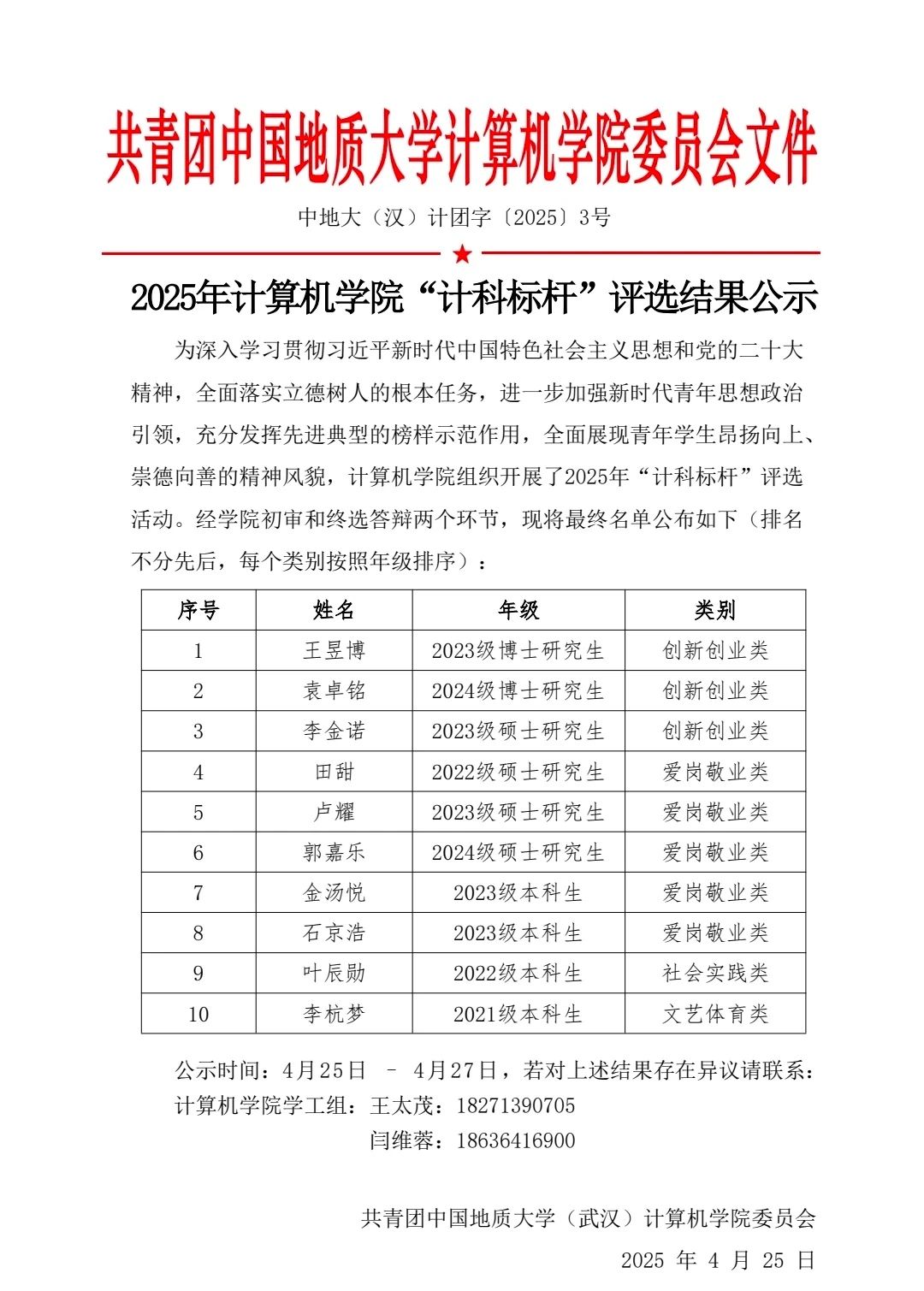 2025年太阳集团tyc539“计科标杆”评选结果公示