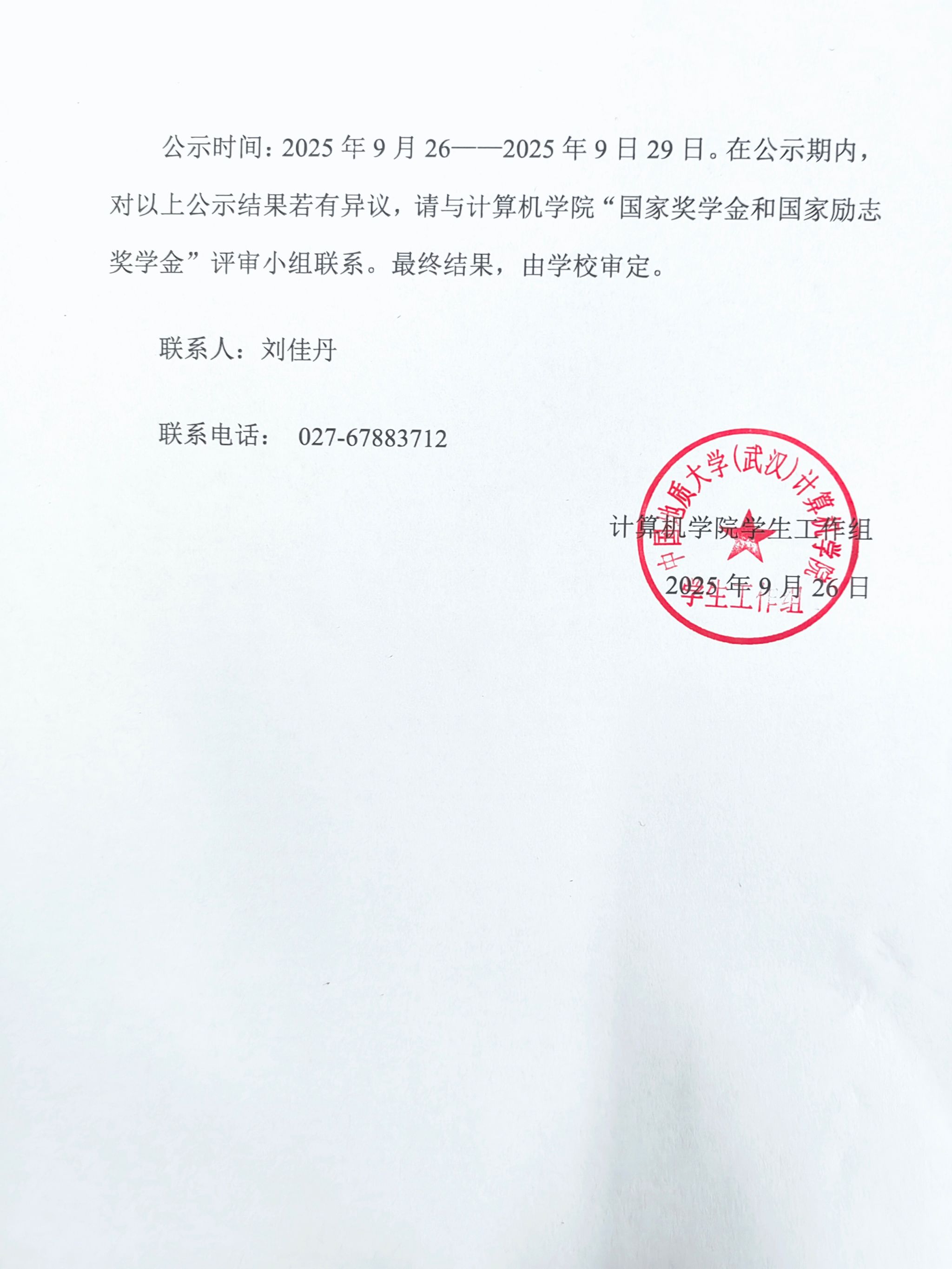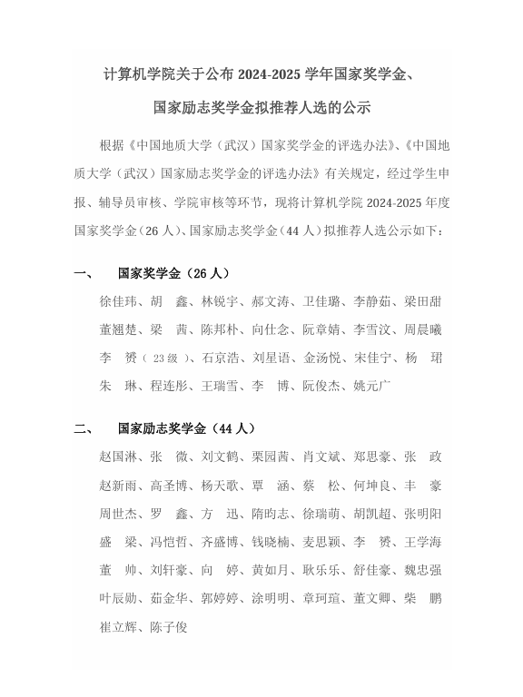 太阳集团tyc539关于公布2024-2025学年国家奖学金、国家励志奖学金拟推荐人选的公示
