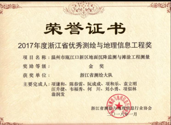 在浙江省地质勘查局测绘大队(浙南测绘工程处、海洋测绘工程处)工作期间,他参与负责的测绘工程大项目达几十项,其中“温州大门岛镍生产基地测绘工程(海洋测绘)”项目荣获全国优秀测绘工程奖金奖,“温州市龙湾区农村集体土地所有权确权登记发证项目”荣获浙江省优秀测绘与地理信息工程奖银奖,“温州市瓯江口新区地面沉降监测与滩涂工程测量”荣获浙江省优秀测绘与地理信息工程奖金奖 、“浙江省(舟山群岛、三门湾、乐清湾)海洋测绘水下地形测量和深水岸线调查”荣获中国测绘学会优秀测绘工程金奖。