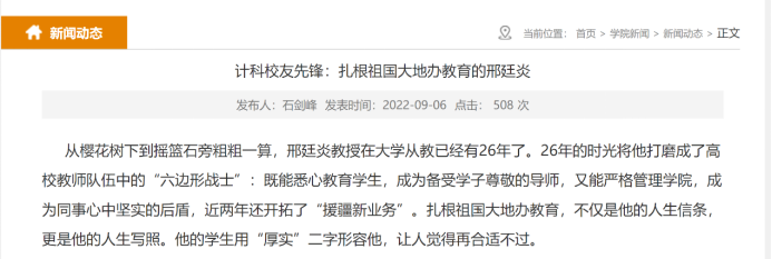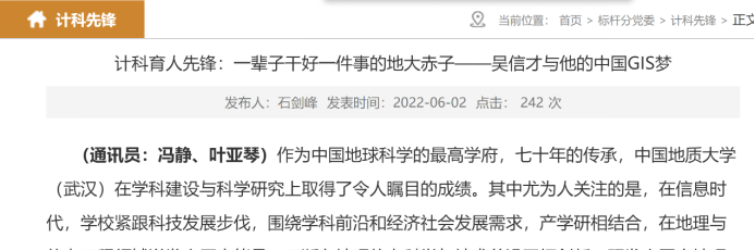 支部定期推举典型人物事迹材料,从师德师风、思政教育等方面撰写和宣传材料。目前已推出计科育人先锋吴信才和邢廷炎老师的通讯稿,如图5所示,已完成优秀员工通讯稿两篇,后期将持续推进。