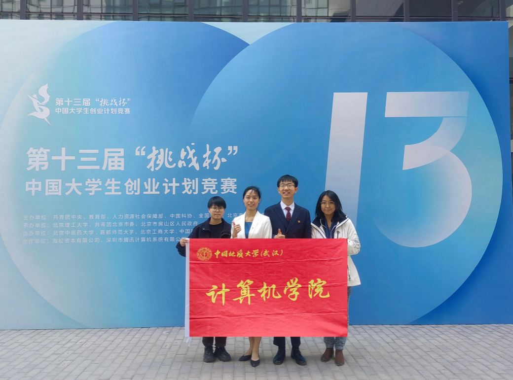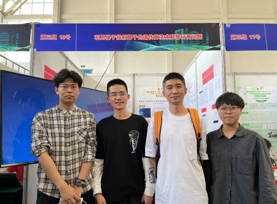 2021年5月,李欢欢(右1)与指导老师及员工团队在湖北省“挑战杯”省赛活动现场