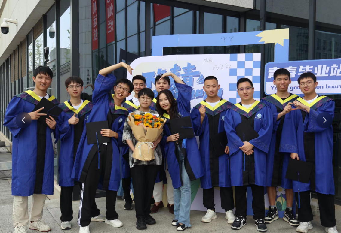 2024年6月,李欢欢(左4)与毕业生合影