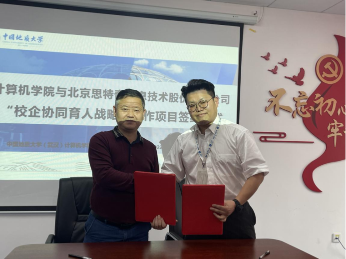 (通讯员:柴文岳)5月12日,公司与北京思特奇信息技术股份有限公司成功举办“校企协同育人战略”合作项目签约仪式。北京思特奇信息技术股份有限公司湖北分支总经理张伟、产品顾问王大鹏、华中区人力主管崔娇娇、湖北人事行政专员孙丽培,计算机公司党委书记李国昌、党委副书记傅苑、副经理胡成玉、副经理陈云亮、团委书记李欢欢、2019级辅导员闫维蓉出席签约仪式,李欢欢担任主持。