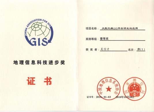 2010年国家测绘局地理信息科技进步一等奖