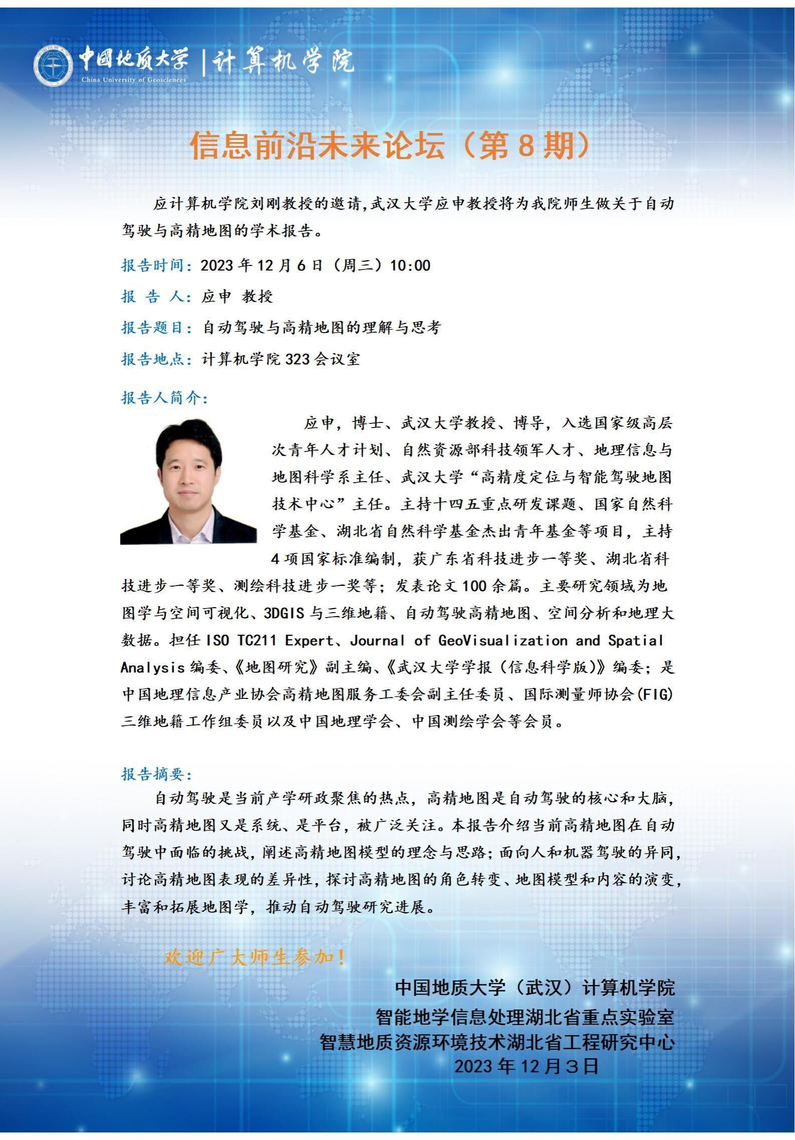 信息前沿未来论坛(第8期):武汉大学应申教授——自动驾驶与高精地图的理解与思考